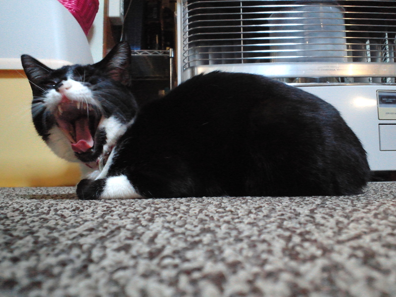 クリスマスの今日を記念したワンカットはいつもの定位置でかました巨大なあくびでした。