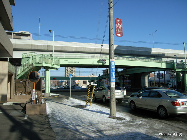 地下鉄出口を出てすぐ、目の前に札幌新道が走っています。