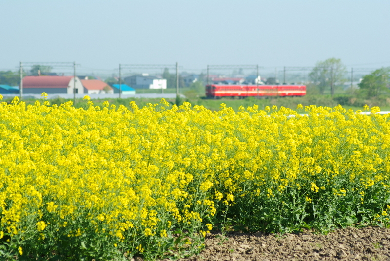 函館本線江部乙付近の畑が黄色い菜の花で覆われていることを知り、行けるものなら行きたいと思っていたら行けてしまいました。