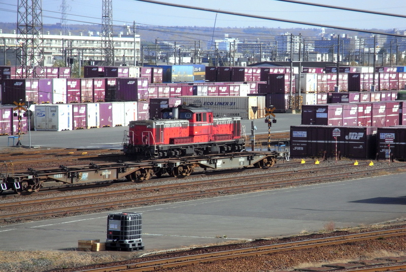 札幌貨物ターミナルの広大な敷地を横切る平和駅連絡歩道橋は格好の観察場所ですが、青天井の先代から建て替えられた時に総密封窓仕様にされて撮影条件に関しては不便になりました。窓ガラスにレンズ先端のゴムフードを密着させて余分な反射を極力抑えて撮影してきましたが、今日行ってみると窓の曇りが尋常ではなく特にターミナルよりは殆ど全滅状態で撮影に苦労しました。証拠に撮ったカットはソフトなメルヘン調になっています。