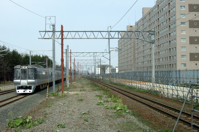 このホームの裏側に高架線が建設されます、工事が本格化すると、この風景も徐々に変化してくるでしょう。