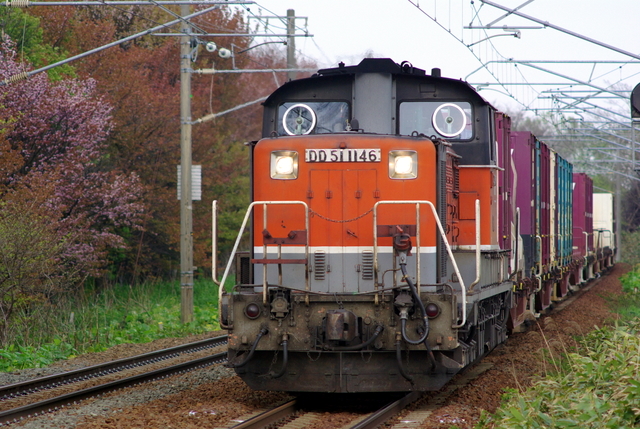 これで今シーズンの桜チャレンジは終了です。去年は余裕が無くてほとんど撮れずじまいで終わりましたが、今年は体力と気力が続く限り挑戦できて満足です。しかし、ここ一番のカットでやや傾いてしまったり、事前にターゲットを絞りきれなかったために優先度を間違えるなど、宿題も残りました。それでも来年はどうなるか分からないDD牽引貨物と桜の組み合わせを抑えておけたのは良かったです。来年は、もっと体力と持久力の充実をはかって、今年よりも完成度の高い一枚をモノにしたいと思っています。