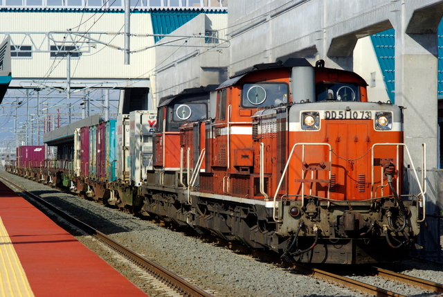 入場券を買いホームへ、さっそく新設された仮設上り線にカメラを向けて待ち構えます。数本やり過ごして来たのは原色1073号+赤A更新!!