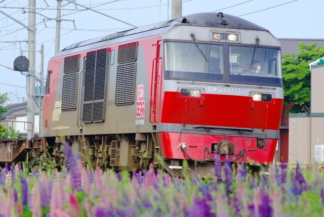 持っていた望遠が長すぎて、機関車とルピナスが窮屈に収まっています、、、