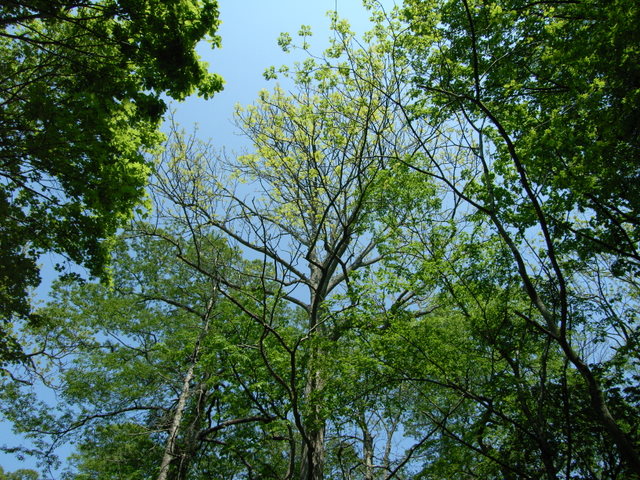 ぼくはこの木が大好きです。去年以来、一年ぶりですが今年も会いに来ることができました。日陰の沢筋から、一本真っ直ぐ天に向かって伸びる佇まいに、何とも言えない気品を感じます。