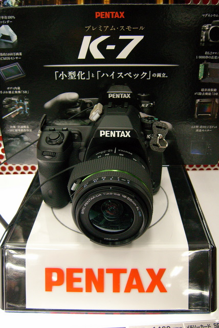 今日初めて店頭で触れただけなので正確な比較対照は出来ませんが、K10Dは巷で言われているとおりけっこうじゃじゃ馬なカメラ、対してK-7は小型で取り回しが良く、手の感覚がストレートに伝わって常に意のままに操れる、例えて言うなら飼い主にどこまでも忠実なワンコ?のようなカメラです。今回は初めて手にとってみた全体としての感想は、前評判に違わぬ出来の良いカメラだな~というものです。今までに小型でこれだけの内容を備えたカメラは無かったので、これから市場でK-7がどのように受け入れられるか非常に楽しみです。正直、もしお金に余裕があるなら欲しいカメラですぅ~←贅沢(゚д゚lll)