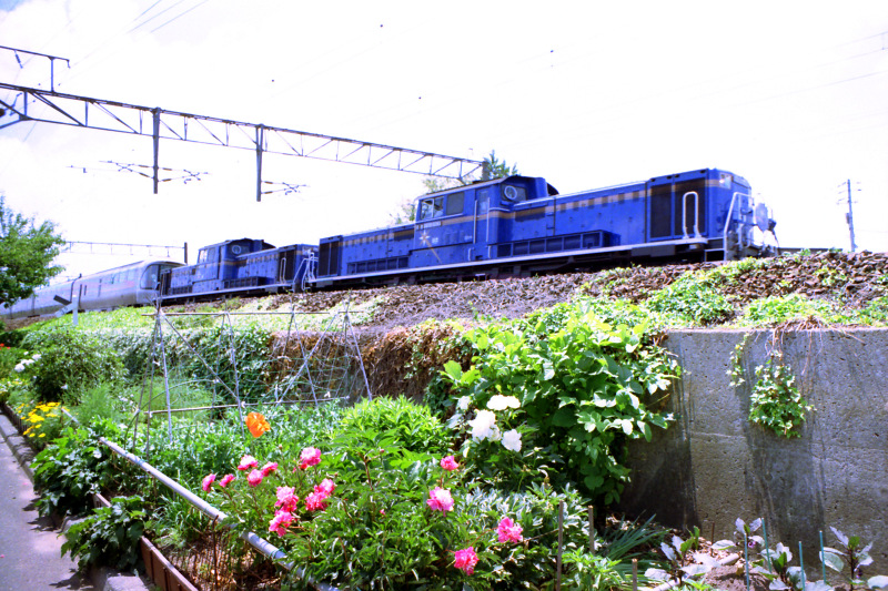 APS-Cデジタルに取り付けた場合、フィルム換算で約350mm相当の準超望遠域による圧縮効果で編成がカーブに差し掛かったところをキレイにまとめることができました。