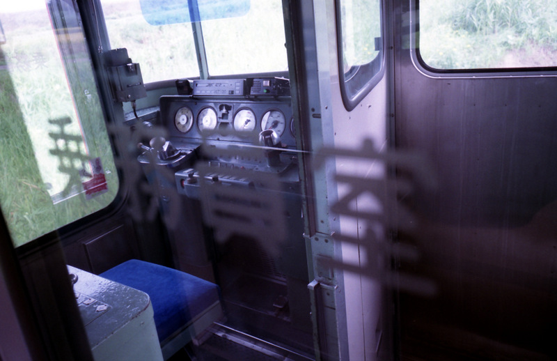 今にも動き出しそうなほど現役感が残る乗務員室を扉越しに覗いた一枚。
