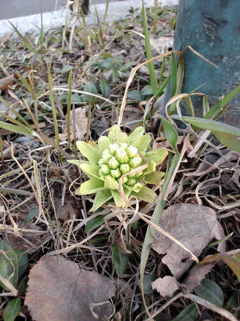 新ケータイ購入後、帰りの道すがら小さく顔を出したフキノトウを見つけました。