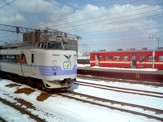 2005年の春、苗穂駅でまだまだ現役だった781系すずらんと711系の出会いです。
