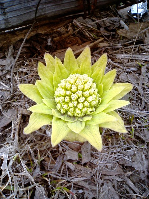 こちらは旧機種A5403CAの当時最新だった200万画素ケータイカメラで撮ったフキノトウです。