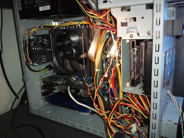 あわてて12cmのCPUファンを取り付けたのですが、今度は電源の12V供給がやや怪しくなってきたので、苦肉の策としてケースのフタを外して扇風機の風を当てるなどしてしのいできました。