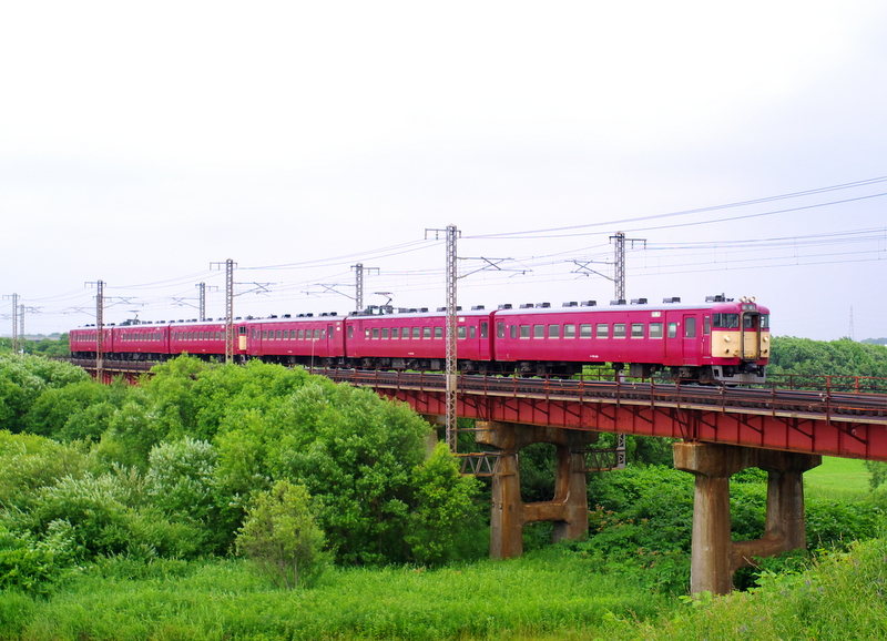 地元で最も象徴的な風景である夕張川橋梁と元祖赤電カラーを収めた一枚です。