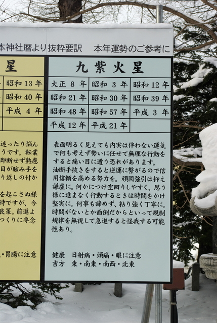 参道の途中には生まれ年ごとの星運が掲示され参拝客が立ち止まって見ていきます。