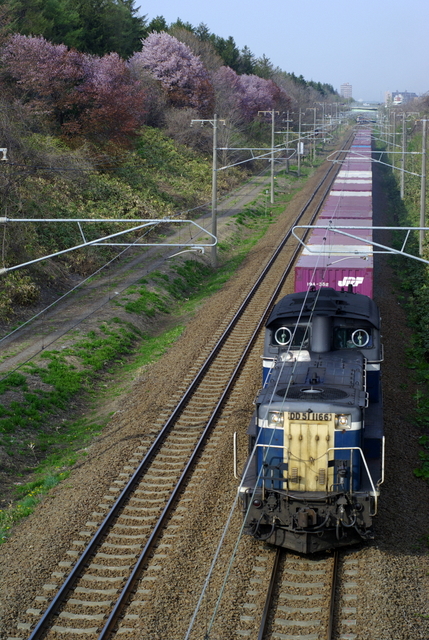 午前のカットはコレというものがないので、夕方の1080レから。GW中は荷が無い単機列車ばかりだった1080レですが、今日はコンテナも豊富で青A更新1166号機でした。