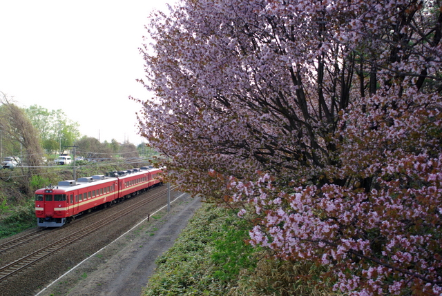 そして好天の中、望んでいた711系と桜のコラボカットが撮れました。早朝の滝川行129Mは、まだ気温が低いので澄んだ空気の中で撮影できます。