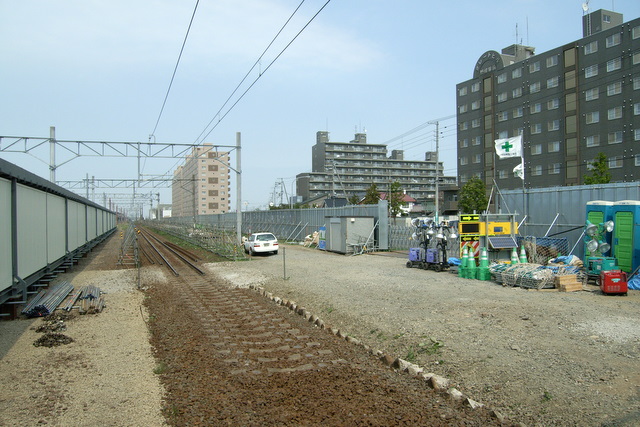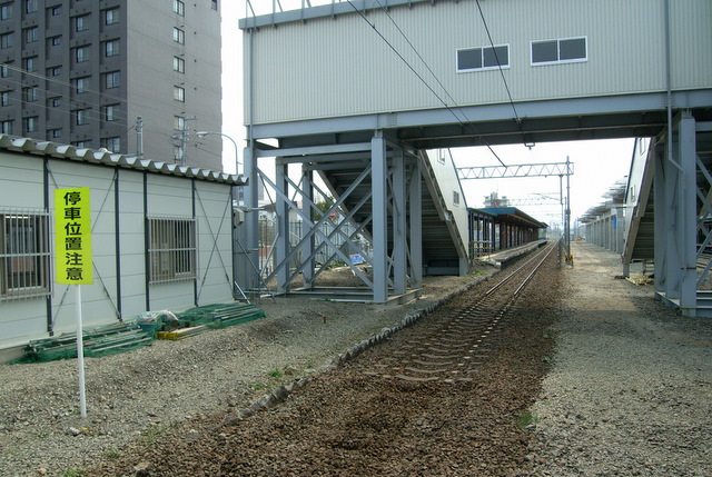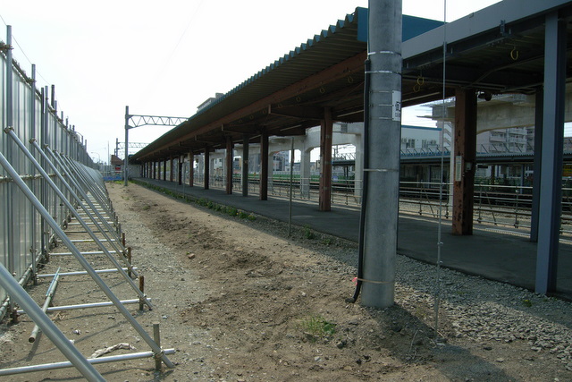 このホームの裏側に高架線が建設されます、工事が本格化すると、この風景も徐々に変化してくるでしょう。