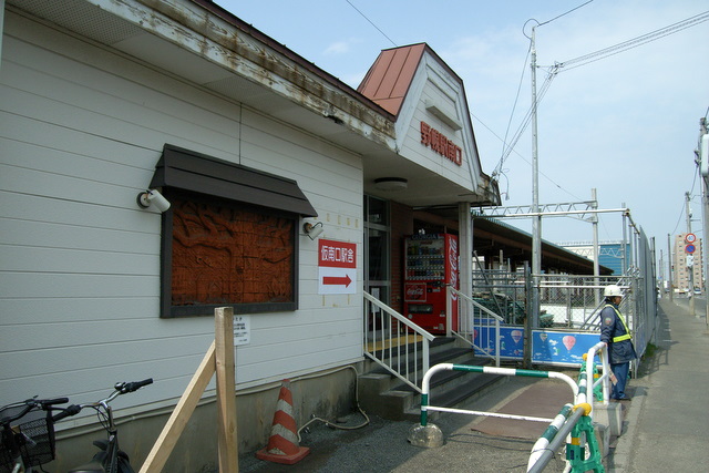 右の線路が使われなくなった旧上り線です、まもなく架線も含めて完全に撤去されて高架新線の敷地となります。
