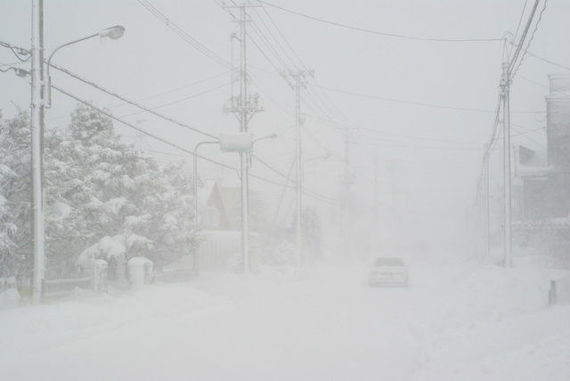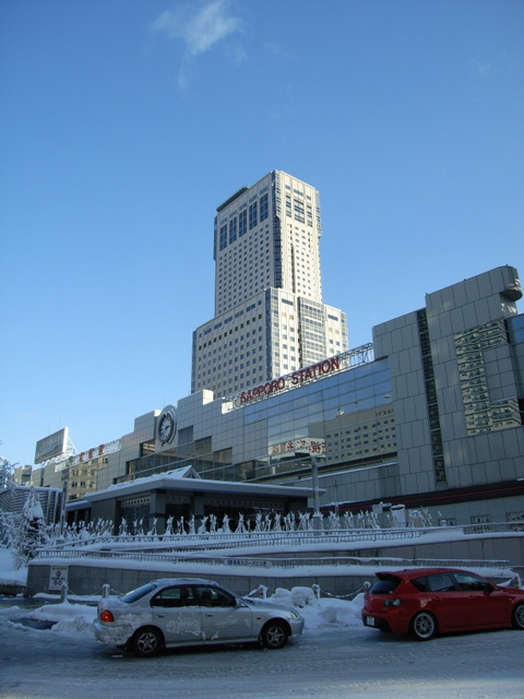 吹雪の合間、晴れ渡った札幌駅北口。