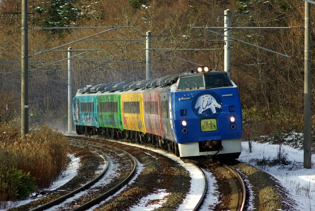 この手のペイント列車は鉄の方々にはウケが悪いのが通例なようですが、ぼくはこの動物園号に限ってはけっこう好きです。あべ弘士さんの動物を変にかわいらしくしていない絵に好感が持てますし、鮮やかでコントラストの高い5色のカラーも魅力的です。これから雪の季節はより一層映えるでしょう。