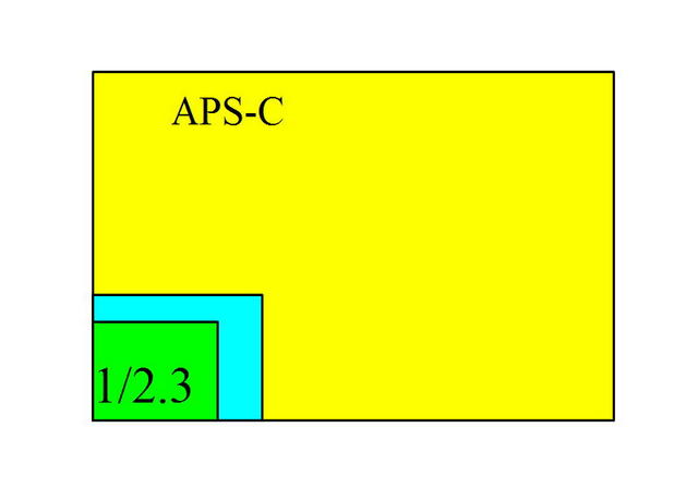 センサーサイズの違いについて簡単な対比図を作ってみました。デジタル一眼でもっとも普及しているAPS-Cサイズと一般的なコンデジ用1/2.3センサーではこれほどの大きさの違いになります。その間はGX-8も搭載しているやや大きめの1/1.7サイズです。同じ1,000万画素でも表面積が大きくなることでダイナミックレンジが飛躍的に向上し本質的に高画質になります。