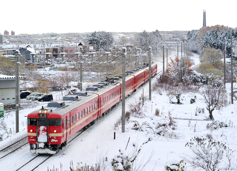 場所は厚別駅近くの100年記念塔を望める道路橋です。ごく近い撮影場所ですがこれまでこのアングルでは撮ったことがありませんでした。