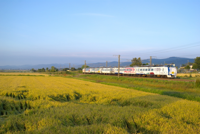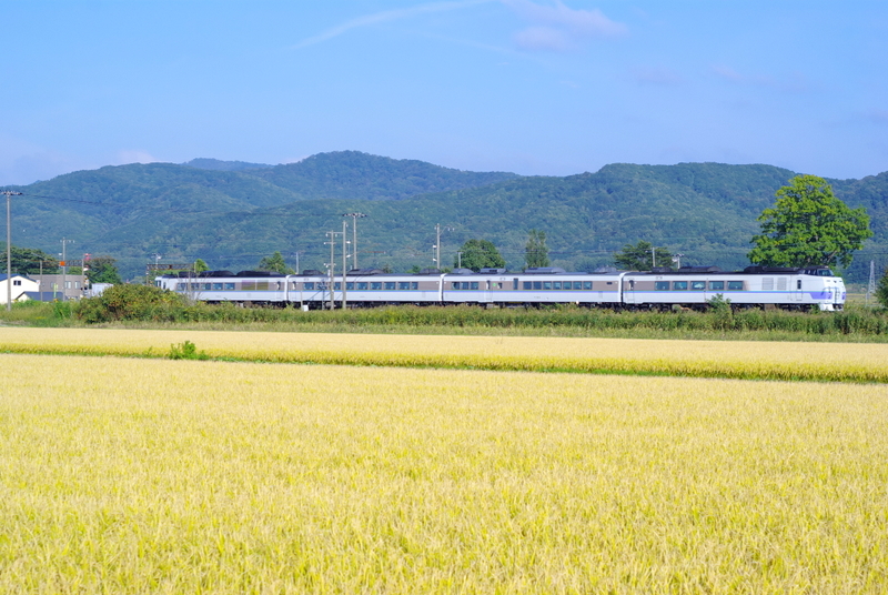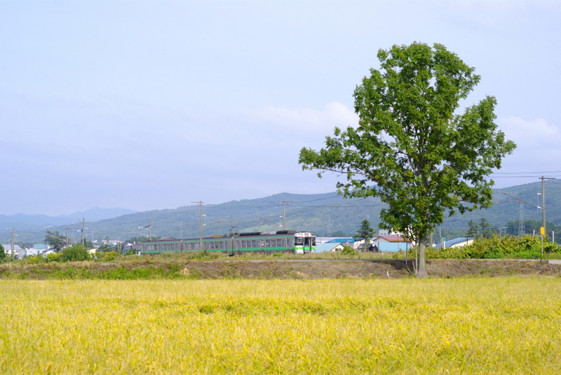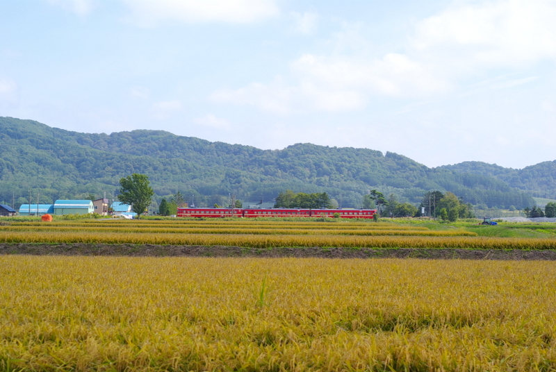 稲穂の風景を求めて函館本線の峰延~光珠内間を訪れました。晴れやかな初秋の天気の下さっそく撮影に臨みました。