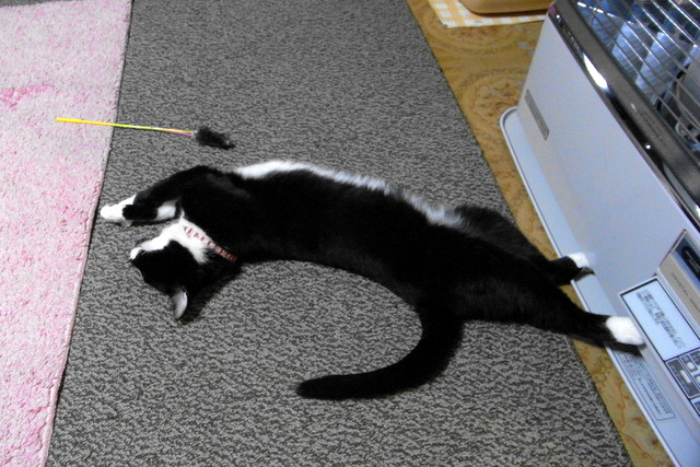 お気にい入りの猫じゃらしでしばらく遊んで上げると満足してくれたようです。