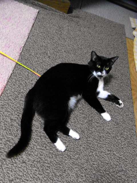 特にトラブルこともなく順調に試運転が済むと、ストーブの前でゴロゴロしながら温まったニャンちょんさんが遊んでくれと催促してきます。