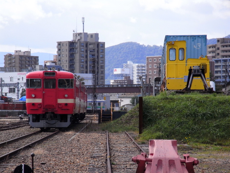 電車に混じってキハ40系の普通列車が頻繁に運転されていますが、電車に比べ効率の悪い気動車の方が置き換えられずに残るところが謎です。