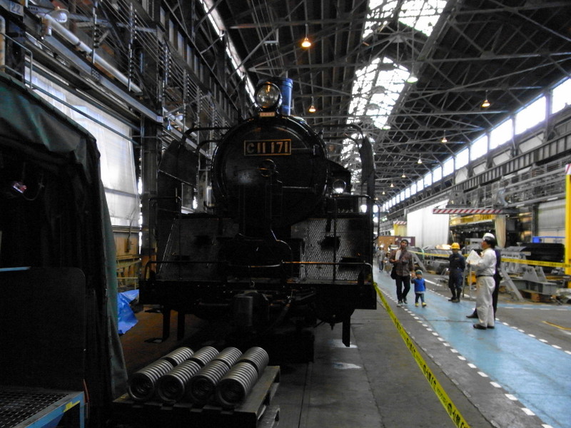 安全政策の影響で廃止に揺れるSL列車の牽引機の一台C11-171号が検査中でした。こちらはかろうじて存続する湿原号用として残るようです。