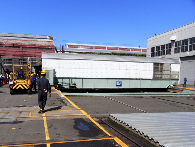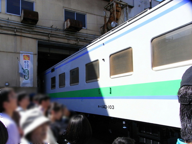 ちなみにこの車両は苗穂工場で試験的にノックダウン製造された珍しい車両です。普段は中間に隠れた平面顔の回送運転台が見られるのも一般公開ならではです。