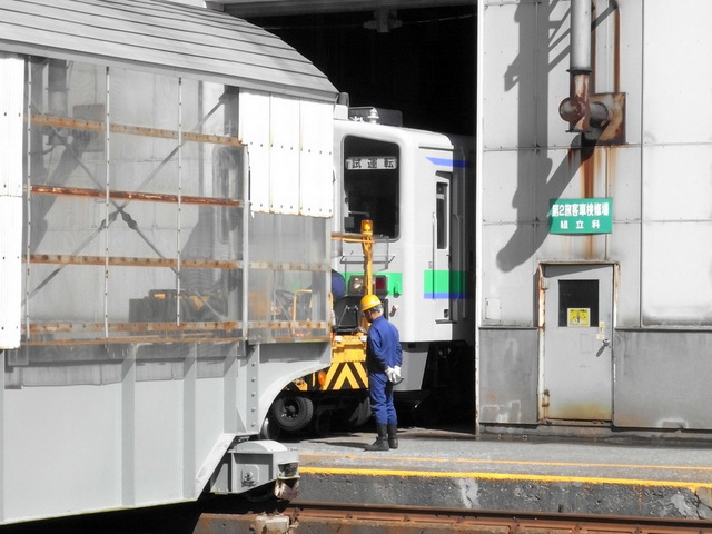 もうネタバレですが、対岸の棟のシャッターが開くと元学園都市線用PDCが姿を表しました。