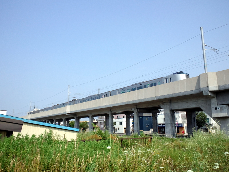 野幌駅手前の高架線上を旭川方へ走り去るL特急カムイの後ろ姿を写した何気ないスナップですが、実は超低速徐行で走っていたのでケータイカメラでも余裕で写し止められました。しかもこの直前には高架線の入り入り口付近の信号手前で完全に停車していました。どうも先行していたキハ201系気動車の普通列車に何かトラブルが発生したようで野幌駅をしばらく発車できなかったことが原因だったようです。