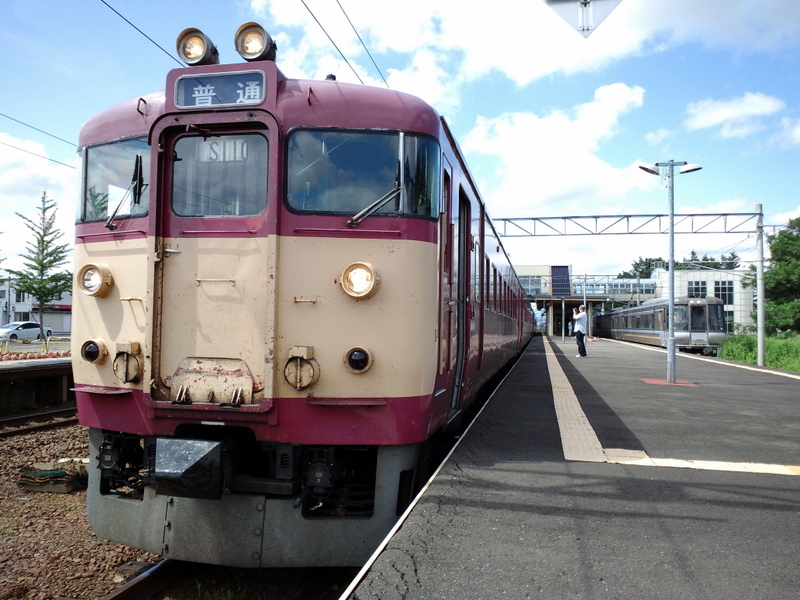 小樽駅を発車して南小樽、小樽築港と見慣れた街並みを先ほどとは逆順にたどってトンネル一つ抜けると、やがて快晴の空のもとの青い日本海が視界に拡がります。早速窓を開けると朝の潮風が蒸し暑い車内に吹き込んで一気に涼しくなりました。持ってきた菓子パンを朝飯代わりに頬張りながら海風にあたっていると寝ぼけた意識が少し冴えてきました。