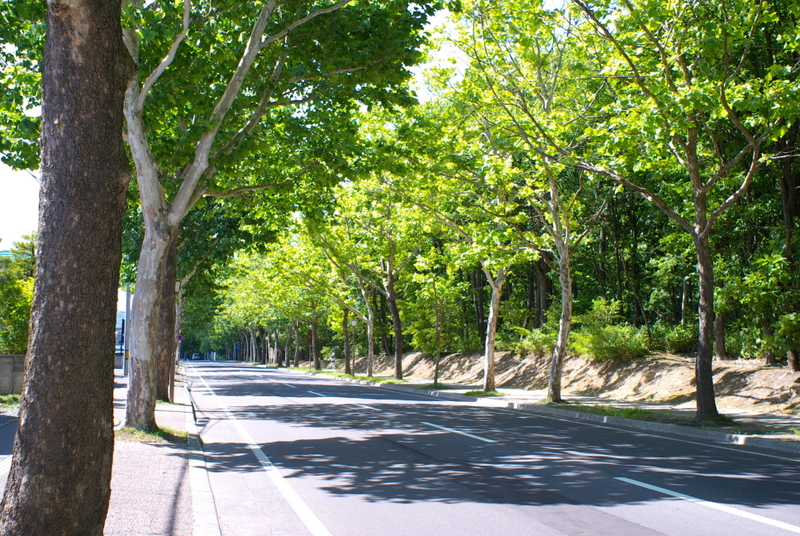 身体の汗も引いて少し元気を取り戻したところでセンターを出て、多種多様な樹種が並んだ公園の中を奥へと進みやがて先ほどの並木道路の横にたどり着きました。