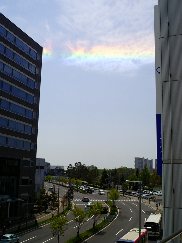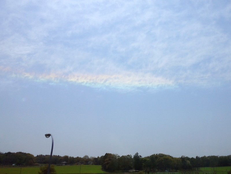 これは彩雲?それとも幻日って言ったけ?と何気に思っていましたが、その日の夕方のニュースで環水平アークということを知りました。