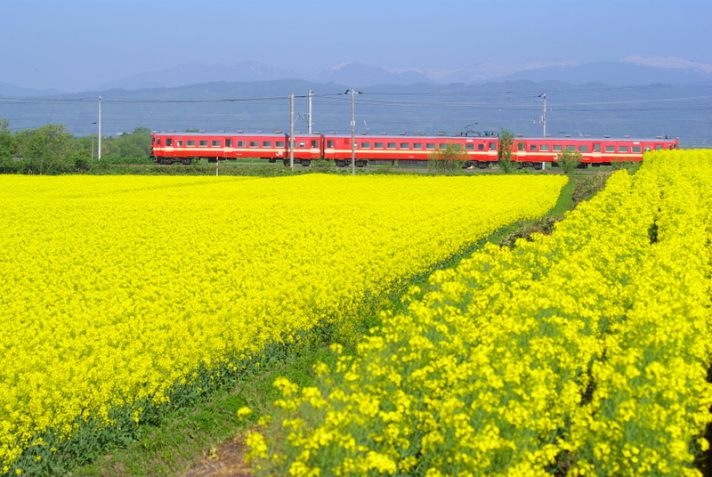 今回は思わぬプレゼントとして赤い電車と菜の花畑のコラボレーションを記録に収めることが適いました。