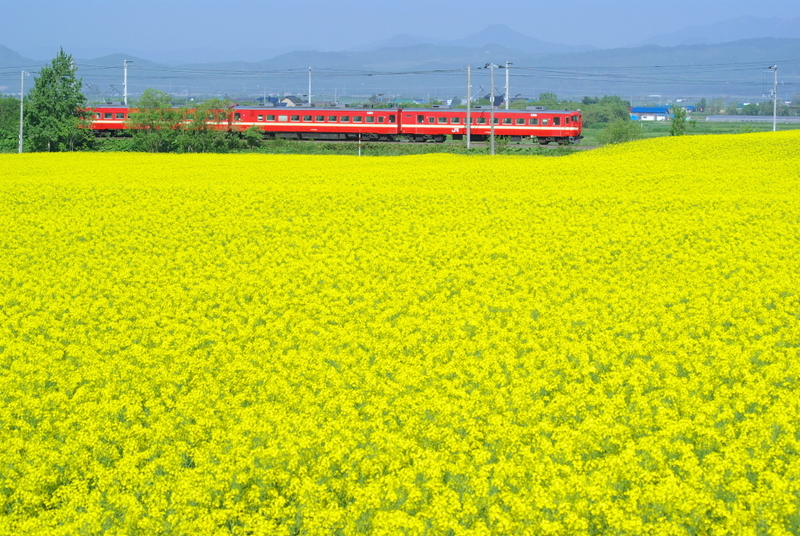 函館本線江部乙付近の畑が黄色い菜の花で覆われていることを知り、行けるものなら行きたいと思っていたら行けてしまいました。