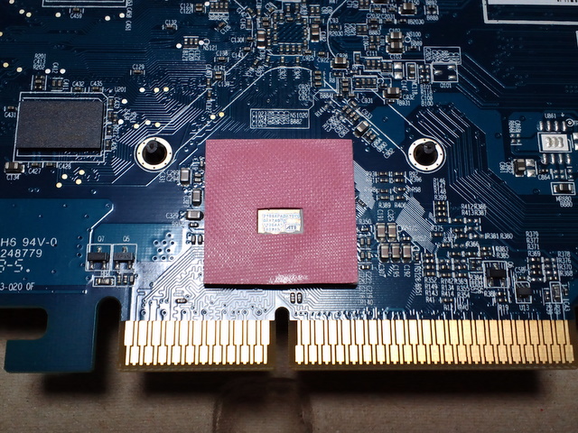 新しいグラボは3つのうち2つが富士通製の固体コン、一つが香港のそれなりのメーカー製の固体コンとのことです。(1枚目の写真、青い基盤上に赤い半円の印が入った灰色の円筒形の部品x3がそれです)