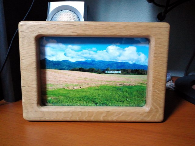 ふだん自分の撮った写真をプリントして飾ることはあまりないのですが、小樽のお土産屋さんで津別産木工品のちょうど良い写真立てを見つけたので組み合わせて飾ってみました。
