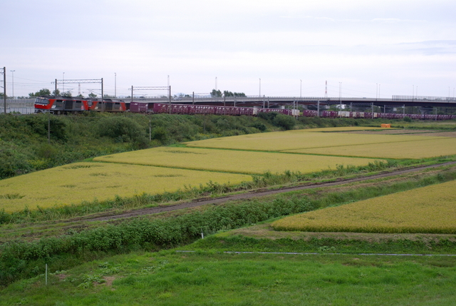 田園風景を俯瞰する構図でコンテナ編成の広がりを協調しようという狙いでしたがイマイチスッキリしない結果に・・・。