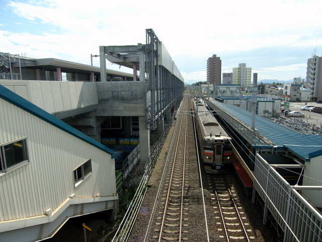 現在の高架駅の北口側外壁は仮のもので、10月23日の開業後に現在の仮説駅舎と線路を撤去した上で再整備される予定です。