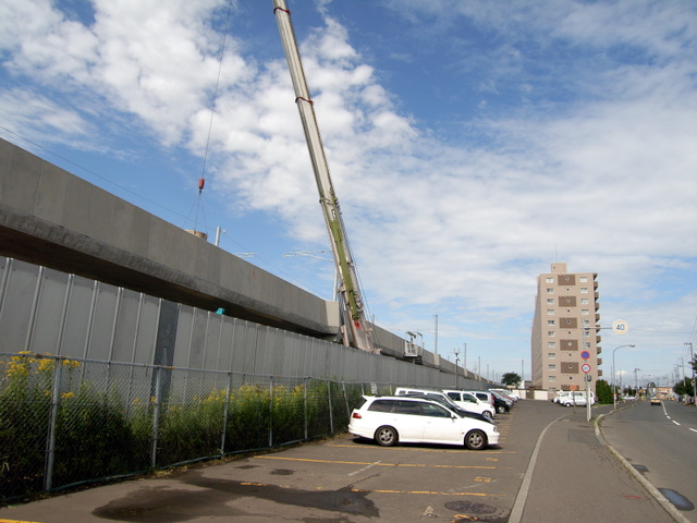 裏手の敷地はちょうど旧夕張鉄道の線路だったのですが、高架工事の進展でその面影はほとんど無くなってしまいました。