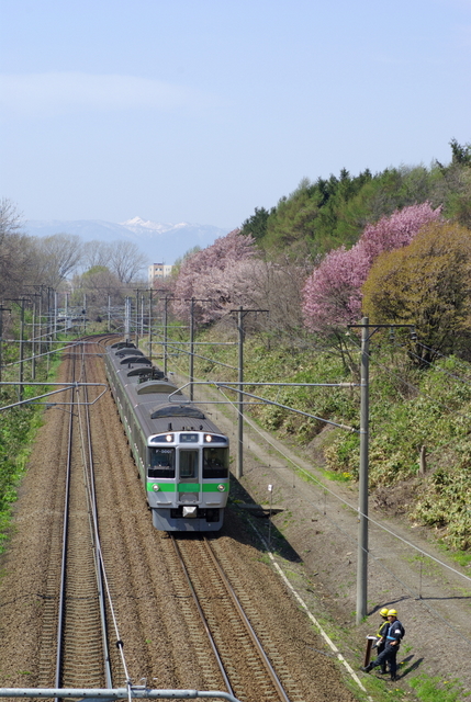 野幌方面から保線の方が巡回中で列車が来るたびに待避されていました。列車通過後、再び大麻方面へ向かわれました。