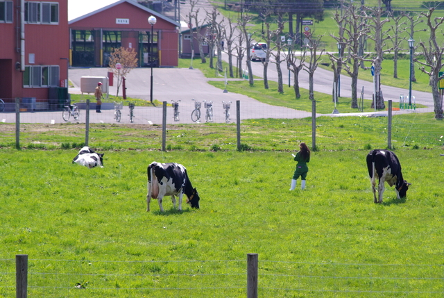 陸橋の上から酪農学園の牛さんたちが見えます。寝そべったり草を食んでいたりと何とものどかな光景でした。
