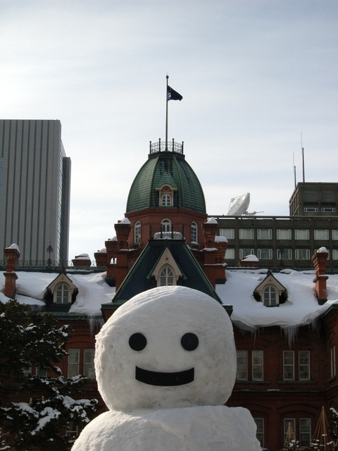札幌駅前から大通方面へ行く途中で見かけた赤レンガ前の威風堂々とした雪だるま君。ここも外国人観光客で人だかりができてました。これだけの観光客を集客する雪だるま君も侮れない存在ですね。