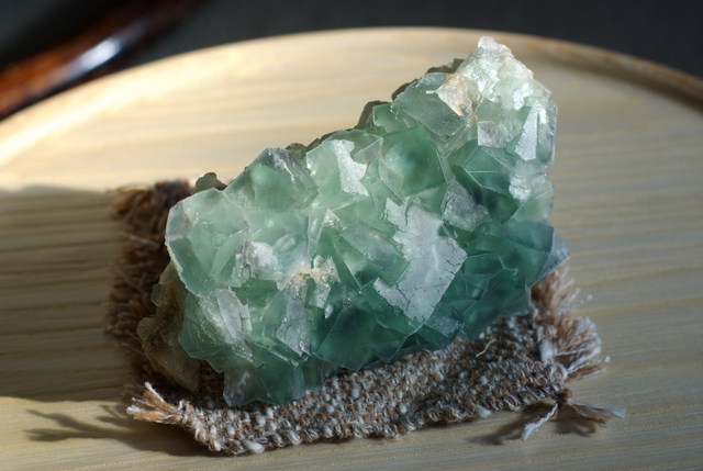 先月、写真の天然石の結晶を買いました。フローライトという水晶の親戚?のような鉱石です。