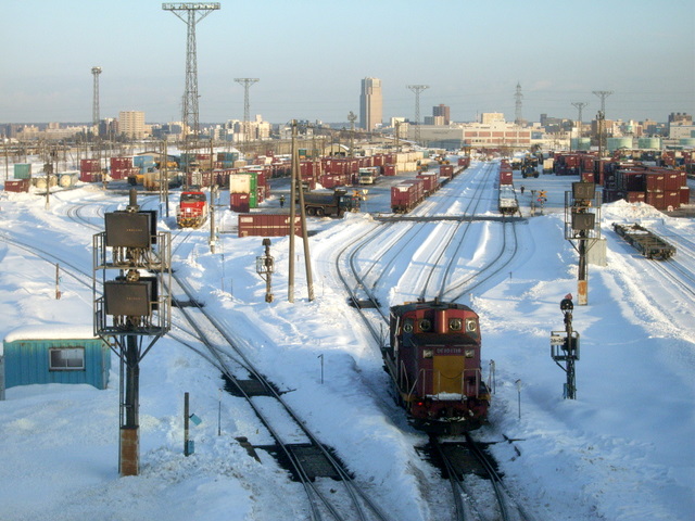 その行く途中、車窓から札幌貨物ターミナルの様子を見ていると見慣れない車両が置かれているのを発見!