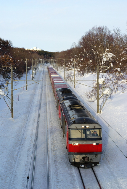 今日の1080レはDD51A単機牽引、2082レはおそらく原色単機牽引、HD300札幌貨物駅構内の留置線群でDD51B×2(有火)を牽引する形で停車、何かの試験を実施していたようです。